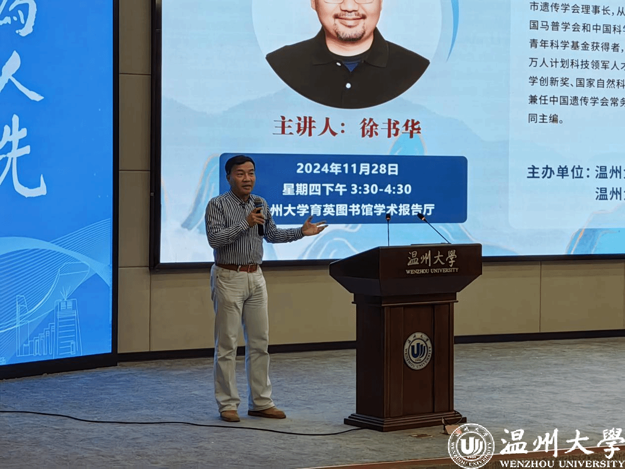 2024年11月28日下午,金年会体育平台入口特聘教授、金年会体育平台入口进化生物学中心主任、上海市遗传学会理事长徐书华教授,受邀莅临金年会体育平台入口罗山讲堂,于育英图书馆报告厅以“第五范式与基因大数据研究”为题,展开了一场精彩的学术讲座。出席本次讲座的嘉宾有图书馆副馆长周志峰、金年会体育平台入口陈恒教授和多名骨干教师,此次讲座由陈恒教授主持,吸引了百余名金年会体育平台入口师生前来聆听。