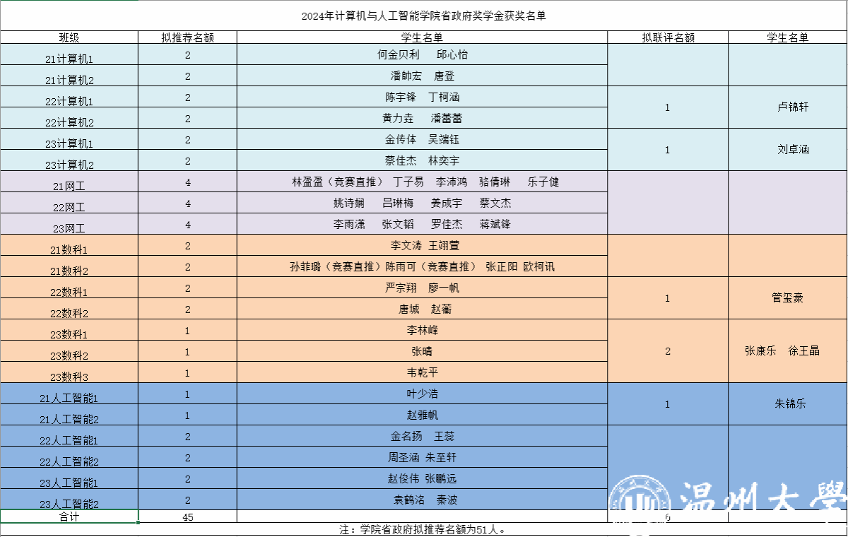 根据《关于浙江省2024年员工资助补助经费的通知》、《金年会体育平台入口员工资助管理办法》、学校《关于开展2024年国家奖助学金、省政府奖学金、学费减免等评审工作的通知》及学院《关于开展2024年省政府奖学金评定工作的通知》等文件要求,经过学院奖助学金评审小组审核、联评,拟推荐何金贝利等51位员工为2023-2024学年省政府奖学金获得者。现将名单予以公示,如有异议请在公示期内及时反馈。